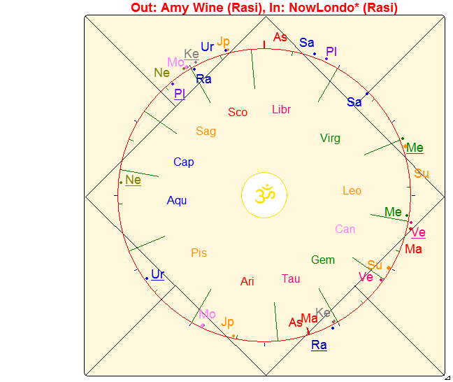 at death, SA by transit in 12th house to natal SAthe 12th is inimical to the first; as these young people approach their Saturn return the ball of weight of Saturn is pulling them to themes of finality; Kurt and Janis were in Saturn mahadasha at time of death. Since Amy’s birth time is unknown we just don’t know her mahadasha at death, and Jimi’s was in his avayogi planet of Mercury, where Mercury natally is in the 12th