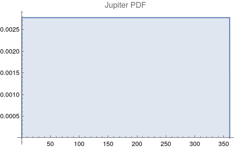 Descriptive plots for the probability distribution function (PDF) of each celestial feature as a function of degrees follow.